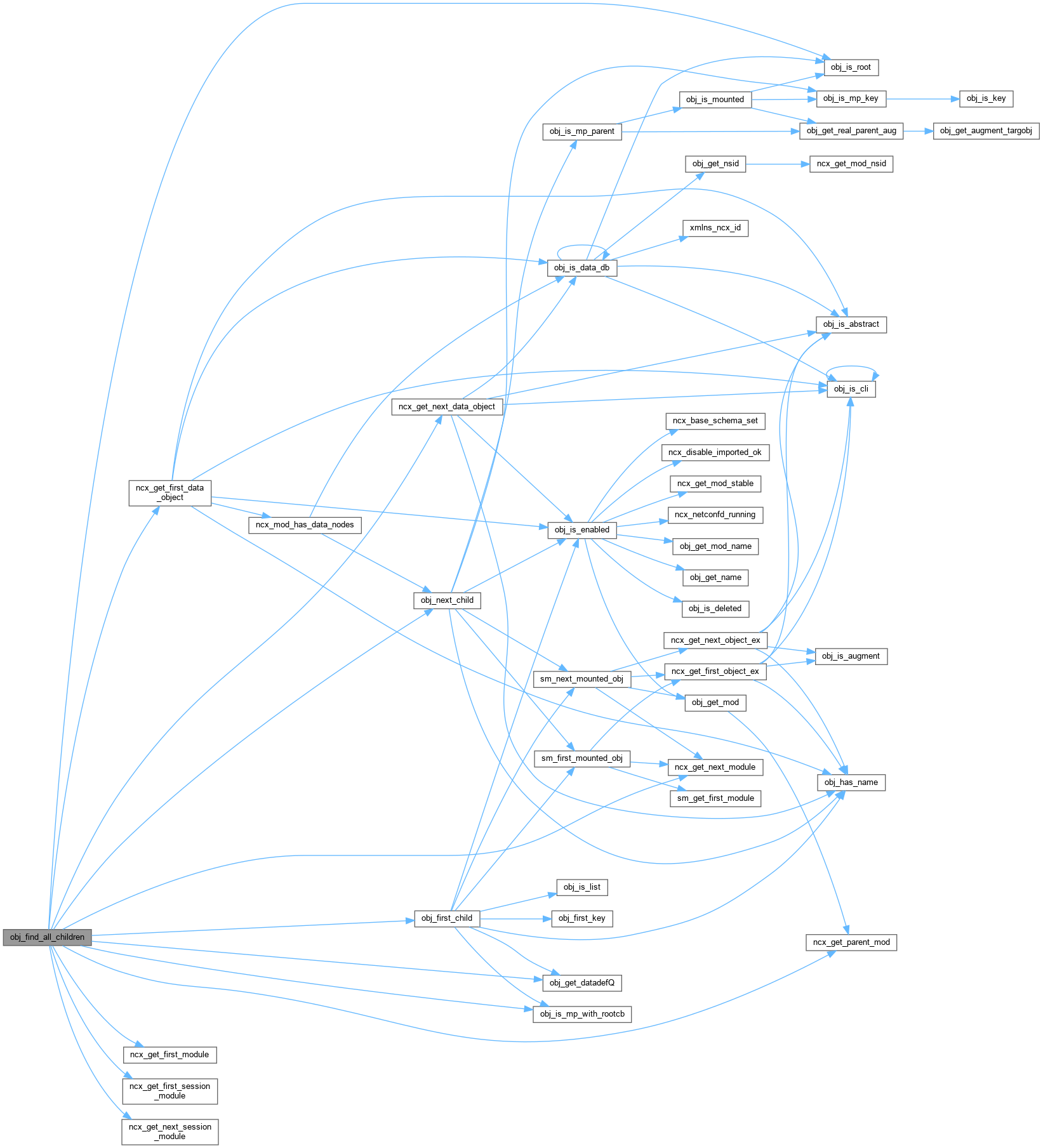 | boolean | obj_find_all_children (ncx_module_t *exprmod, obj_walker_fn_t walkerfn, void *cookie1, void *cookie2, obj_template_t *startnode, const xmlChar *modname, const xmlChar *childname, boolean configonly, boolean textmode, boolean useroot) |