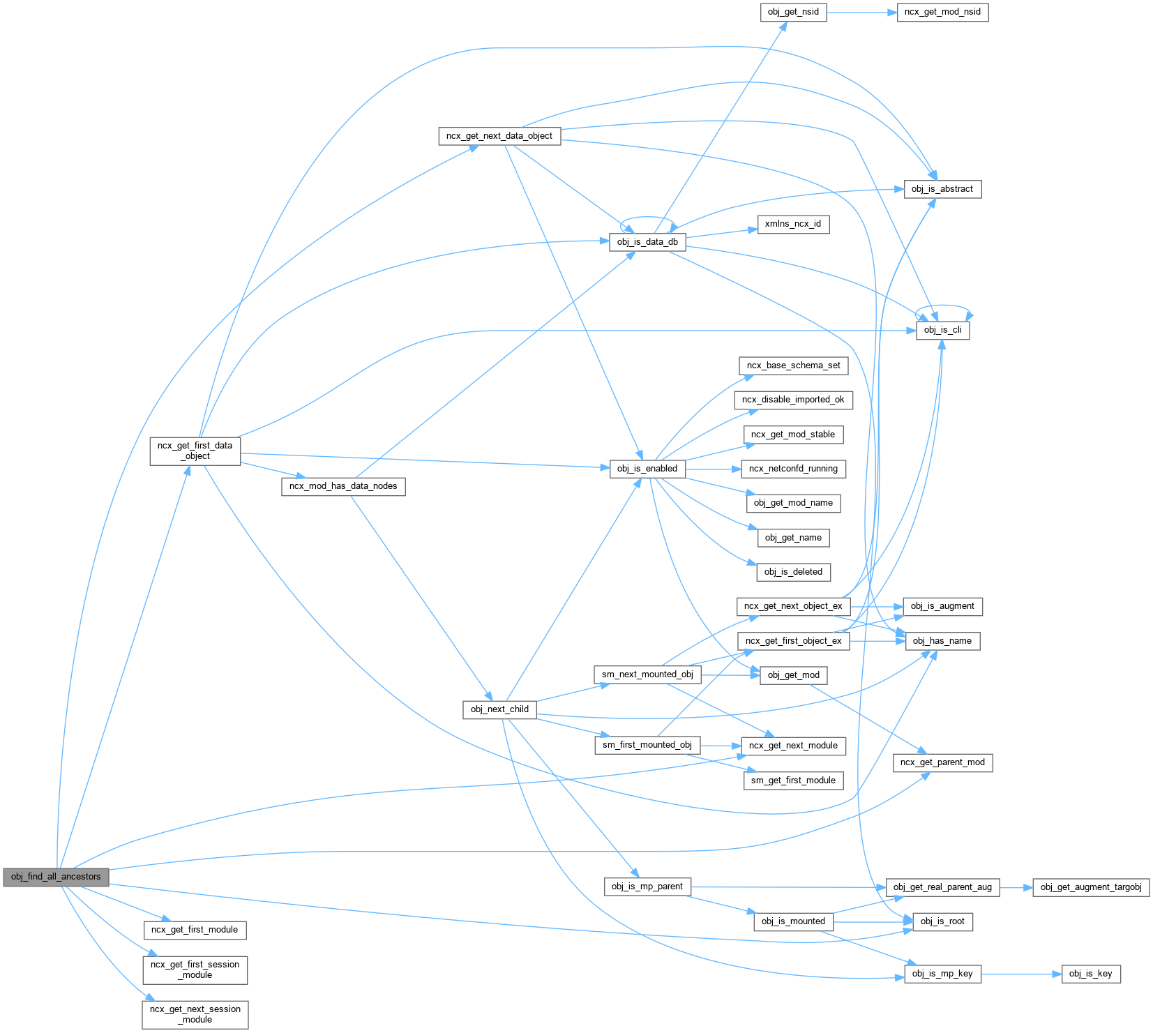 | boolean | obj_find_all_ancestors (ncx_module_t *exprmod, obj_walker_fn_t walkerfn, void *cookie1, void *cookie2, obj_template_t *startnode, const xmlChar *modname, const xmlChar *name, boolean configonly, boolean textmode, boolean useroot, boolean orself, boolean *fncalled) |