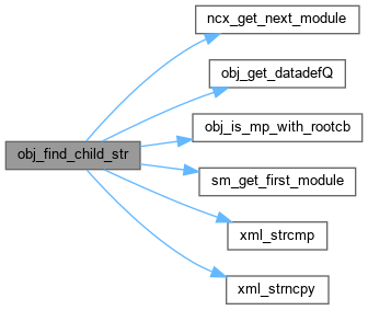 | obj_template_t * | obj_find_child_str (obj_template_t *obj, const xmlChar *modname, const xmlChar *objname, uint32 objnamelen) |