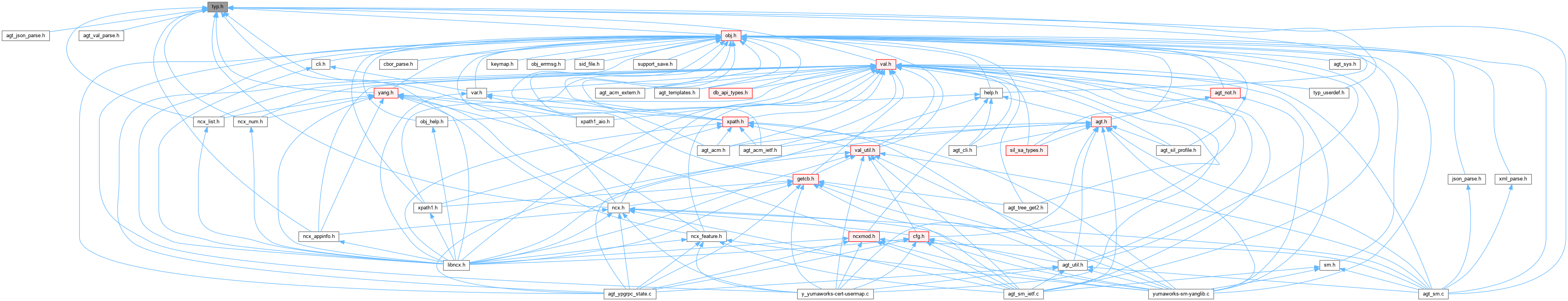 | One YANG 'typedef' definition – top-level type template Also used for a YANG Metadata Annotation. More... | |